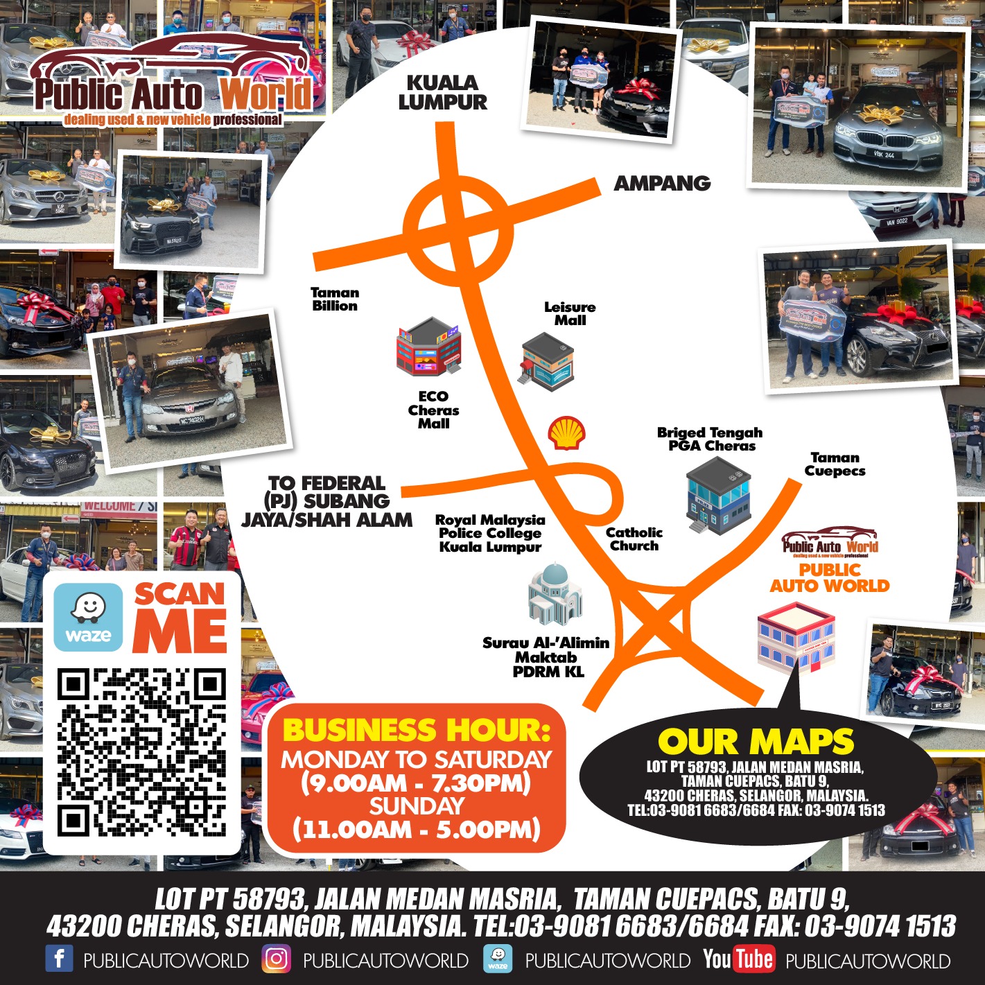 General Inquiries / Feedback 03-9081 6683 8:00am - 7:00下午 (Mon-Sun) publicauto.adv@gmail.com Social Media Chat with us directly WhatsApp ID +6012 - 261 3278 Open WhatsApp WELCOME TO VISIT OUR SHOWROOM ( WE OPEN 7 DAYS A WEEK ) ⏰ 9:00am - 7:00下午 (Mon-Sat) ⏰ 10:00am - 5:00下午 (Sun) 🌇 ADD : 很多 58793, 棉兰马斯里亚, 库帕克斯公园, 43200 蕉赖, 雪兰莪 Book For Test Drive 地点 (需要) 车型 姓名(需要) 电子邮件(需要) 联系(需要) Equires 姓名(需要) 电子邮件 (需要) H/P Contact Please Fill in any comments or questions that we can imporeve any of our company's services in the future 联系我们